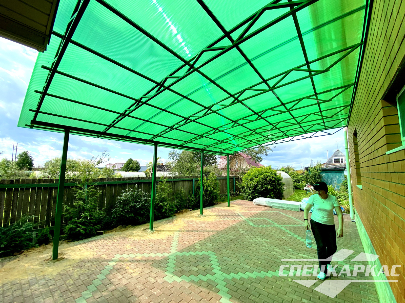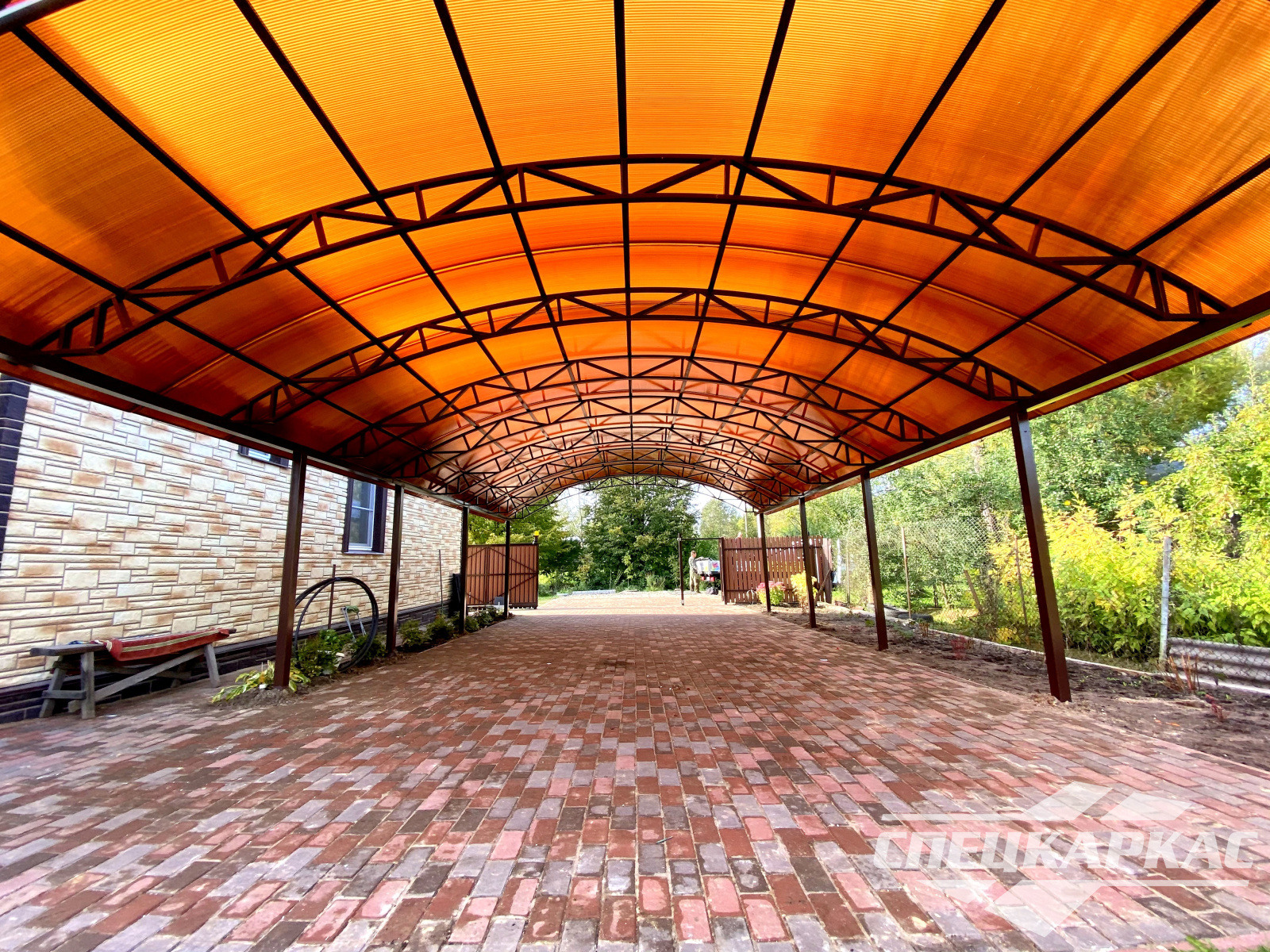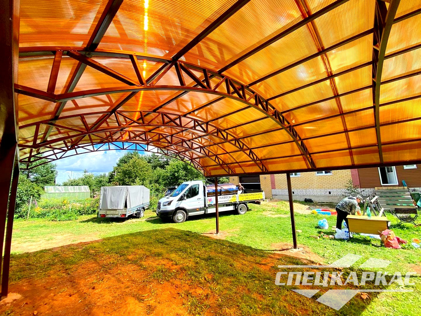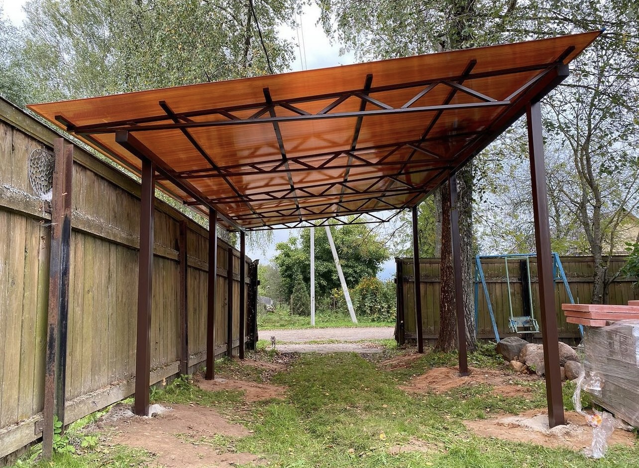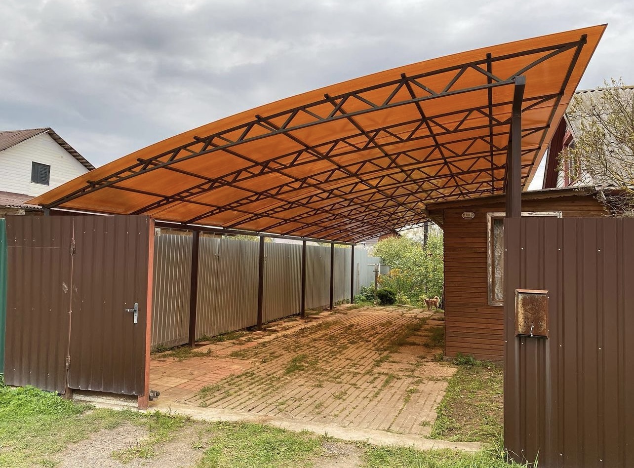 Навес из листов поликарбоната способен стать настоящей «изюминкой» частного дома и приусадебной территории. Полупрозрачные сооружения эстетичны и надежны. Их устанавливают всего за 1-2 дня, за ними легко ухаживать – достаточно чистой воды и неабразивного средства. На первый взгляд кажется, что без такой конструкции вполне можно обойтись. Но стоит купить навес из поликарбоната от компании «Спецкаркас» – и жизнь станет намного проще и комфортнее. Ваше авто больше не будет ржаветь под дождем, крыльцо останется чистым даже в снегопад, на участке появится уютная зона отдыха в кругу друзей и близких.