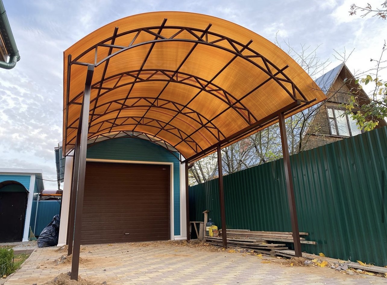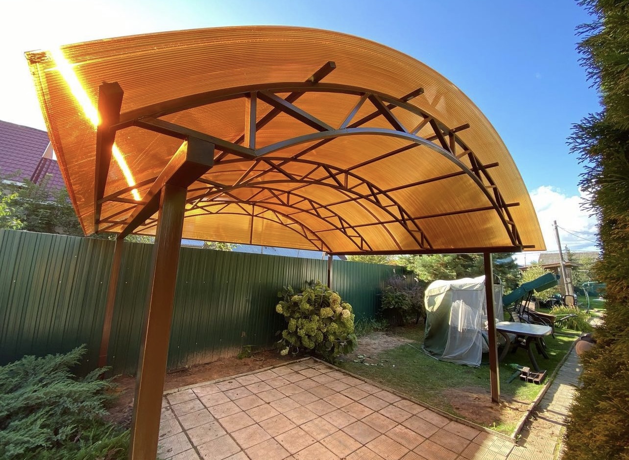 Наши навесы из поликарбоната в Вербилках и Московской области используются для оснащения: